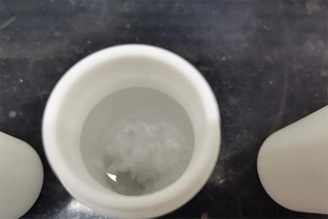 在恒温220℃马弗炉中消解1小时;取出冷却后拧开盖子,在实验电热板中蒸至近干,约2mL,用5mL硝酸和少量水分清洗消解罐,出现白色结晶物,再加入5mL硝酸于220℃电热板消解15min,蒸至体积小于20mL;