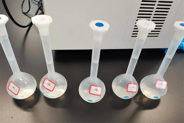 从标准曲线数据可知,第四和第五个点的线性较差,原因是客户取样枪误差较大,取5mL时偏差约50mg(约1%);