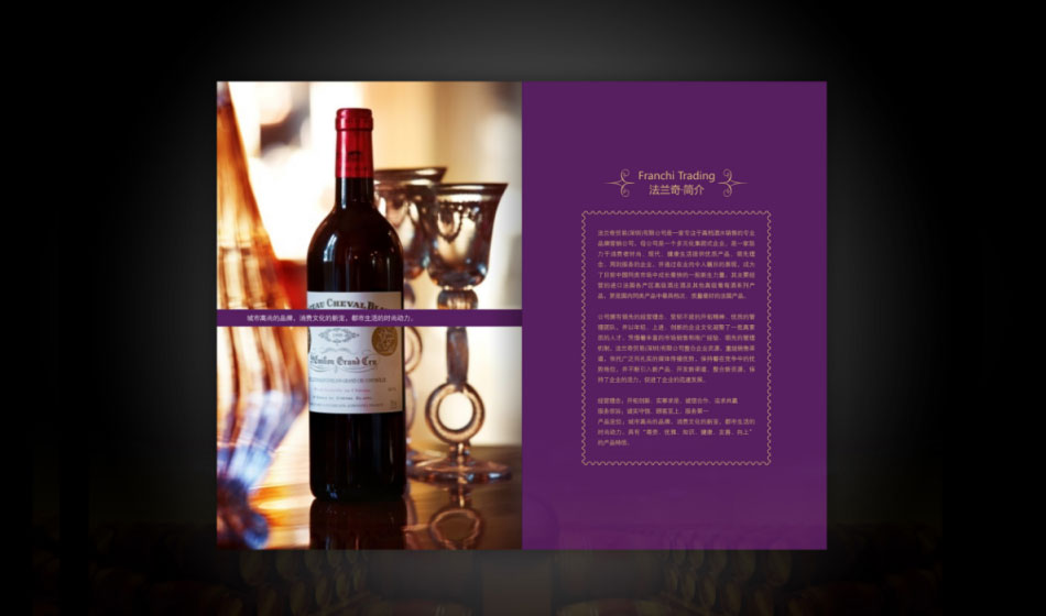 法兰奇贸易(深圳)有限公司主营法国优质葡萄酒,主要有十大品牌,法兰堡、卡伯纳、美乐、红磨坊等 ,款款红酒个性独特、魅力非凡,能够给你带来最纯正的高品质体验。公司长期以 来立足品质,赢得广大消费者的认同和青睐。 服务宗旨:品质完美 诚信完美
