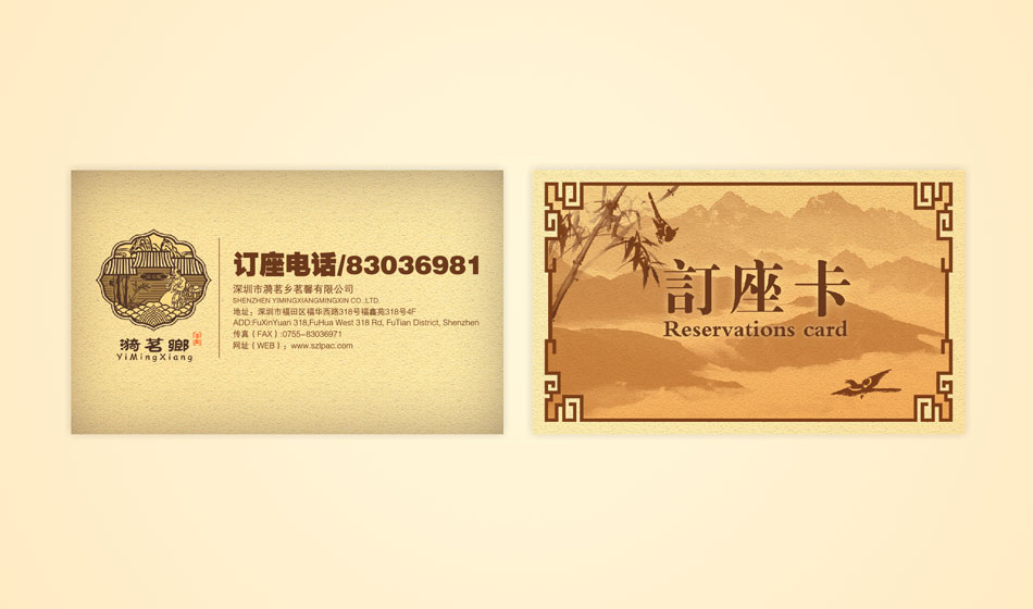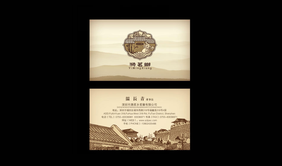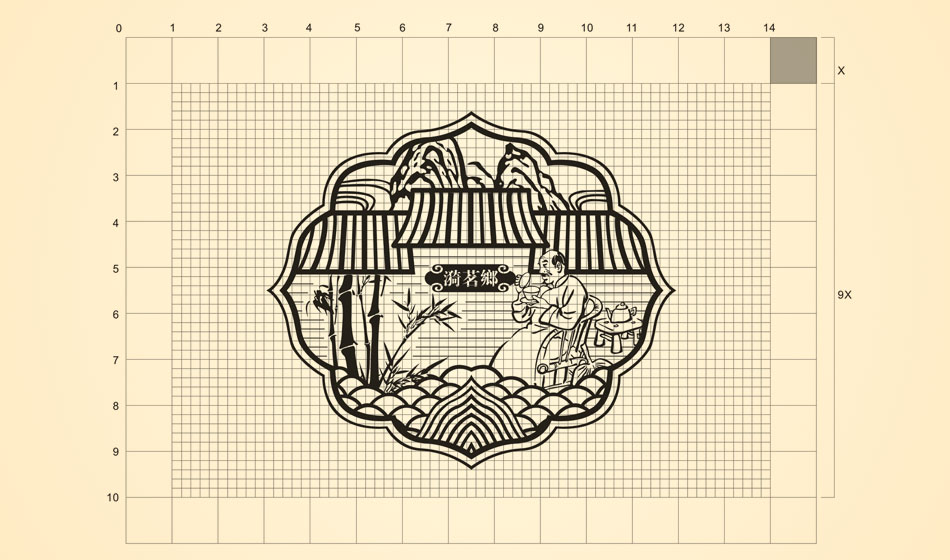 标志涵义:情景融合 | 标志以情写景,以景抒意。 用中国古版画的表现手法, 以塑造优雅、恬静的自然的田园山景为背景, 突出茶楼的基本信息和生态的,环保的养生概念。 勾勒出一副人与自然悠闲自乐的美好画面。 传递出强大的视觉冲击力、吸引力、文化亲和力和想象力。 达到一定的情感诉求。 文化气息浓郁,古朴而大方。