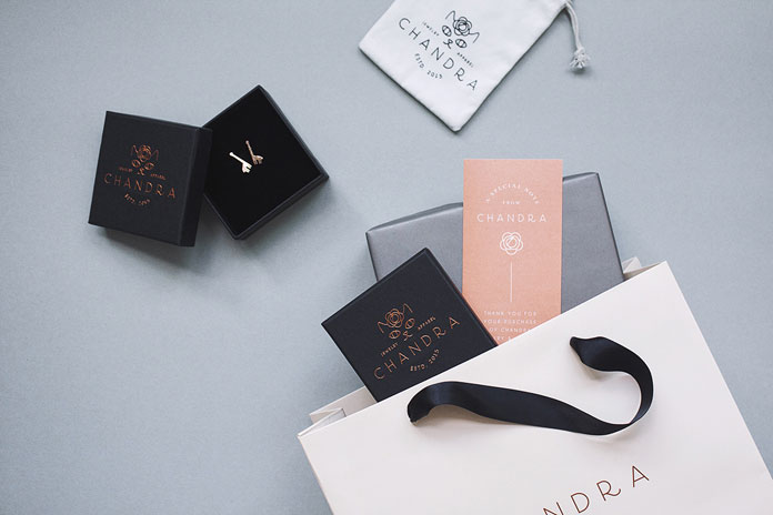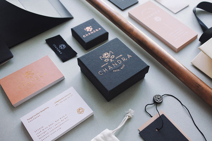 整体的视觉身份与钱德拉的收藏品相对应。它反映了钱德拉的衣服和配饰的微妙优雅。代理Oddds使用橙色,鲑鱼,象牙,和乌木的颜色,在所有印刷品的范围内,一些赤陶和白色的丝绸屏幕的高光。其结果是一个复杂的品牌身份,符合钱德拉的优雅收藏。