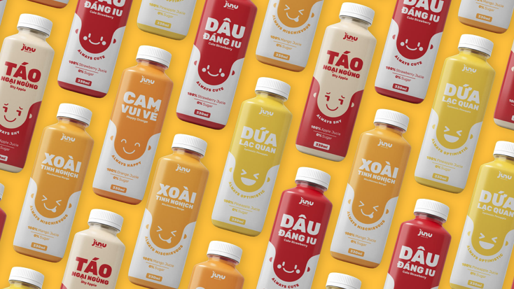 带有情感的果汁饮料品牌设计瓶将帮助客户感觉与水瓶互动。 JUNU的包装以日常的人类情感为灵感,突出果汁饮料品牌设计个性,用可爱的图案来描述情感,辅以极简的色彩,帮助用户更好地接触JUNU的果汁产品。没有什么比与我们使用的东西互动更好的了.