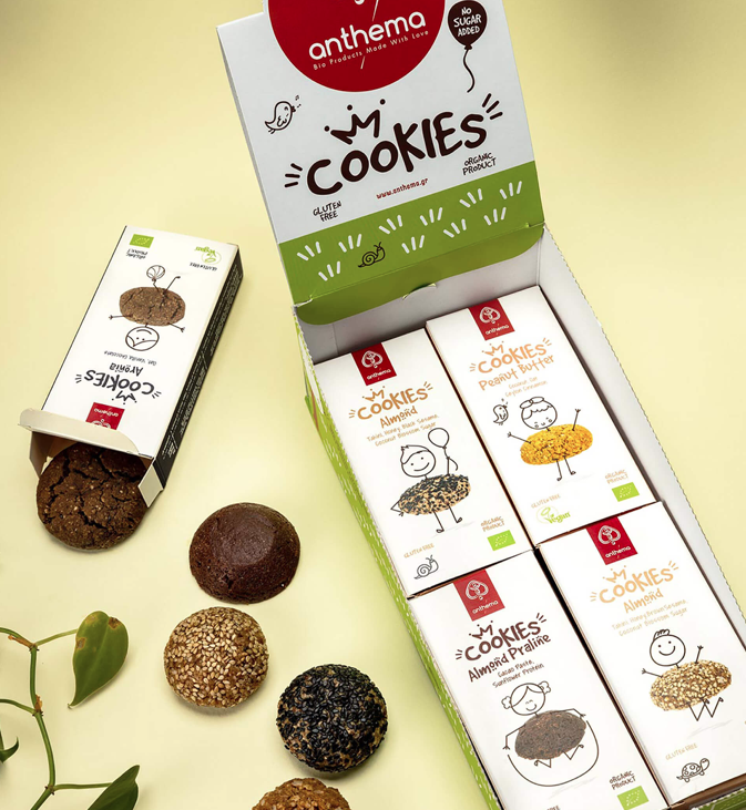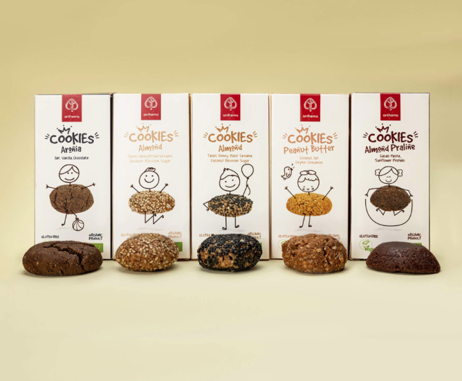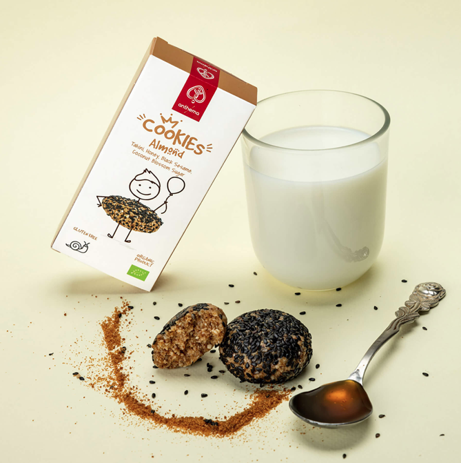 一系列有机产品(如饼干)品牌形象设计和包装设计。该系列由几种口味组成。 芝麻和黑芝麻杏仁饼干、花生酱饼干和果仁糖杏仁饼干,但在每种情况下都不含糖、无麸质且不含动物产品或防腐剂。