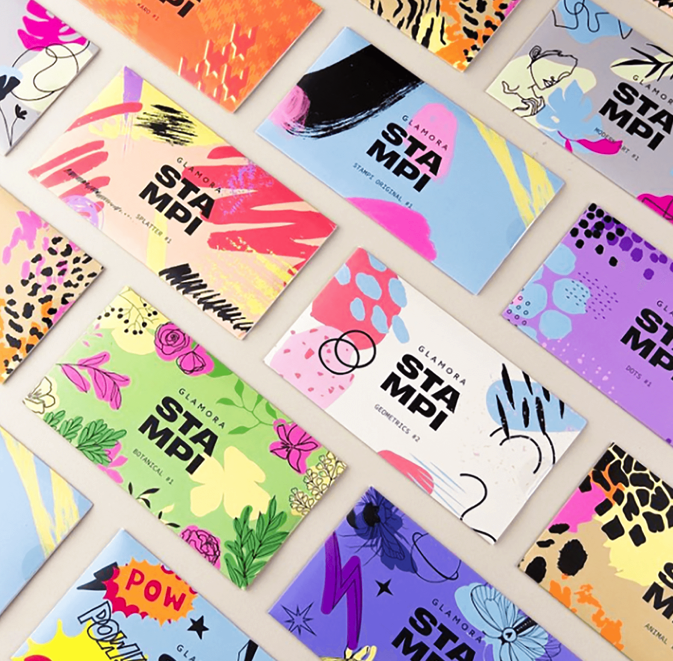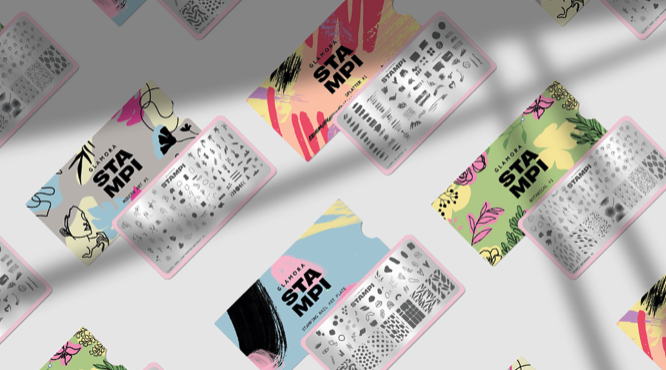 我们创造了各种带有研磨图案的冲压钢板,上面涂有冲压抛光剂。使用特殊的刮刀将剩余的抛光剂从板上擦掉。借助硅胶印章,您可以将图案移动到指甲表面。截至今天,提供 30 种冲压板系列,我们的工作室为每一种都设计了独特的设计纸封面。