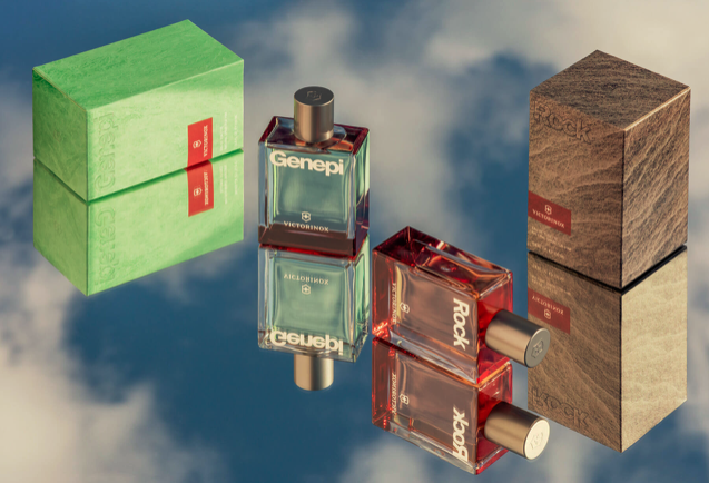 对于这个系列,我们打算捕捉他们的品牌精髓,描绘他们的瑞士根源,并加强他们新鲜、现代和冒险的身份。这些香水的灵感来自钢铁和岩石等自然元素的原始和真实强度。